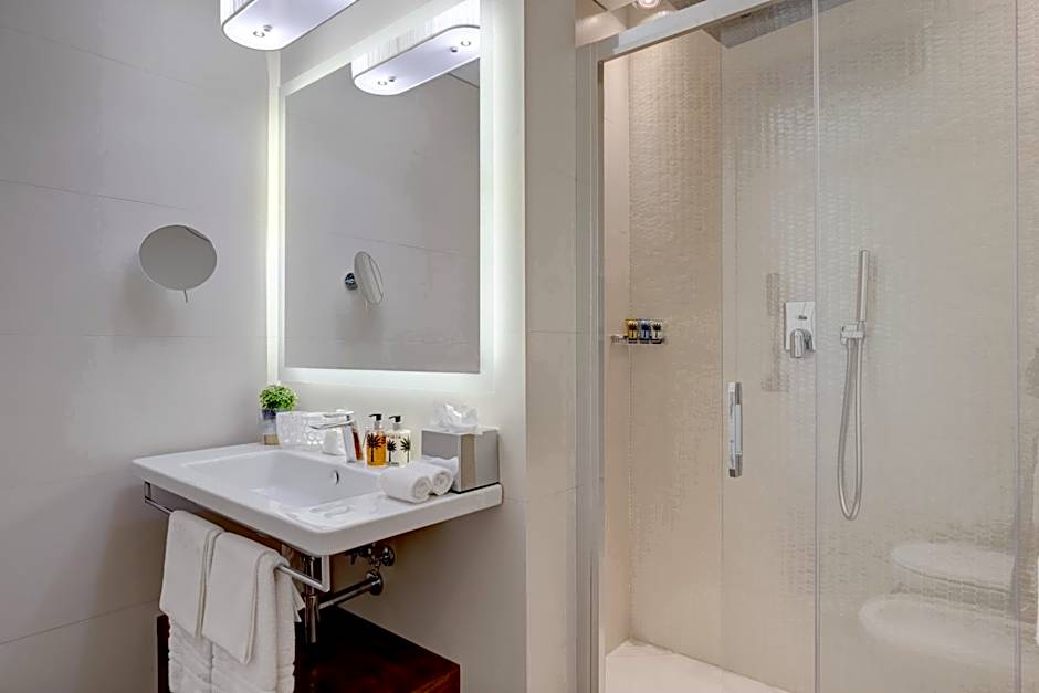 Featuring a private terrace with inner courtyard views, this air-conditioned suite has a seating area with a sofa, a flat-screen TV with satellite channels and a coffee machine. The bathroom comes with bathrobe and slippers, free toiletries and hairdryer.